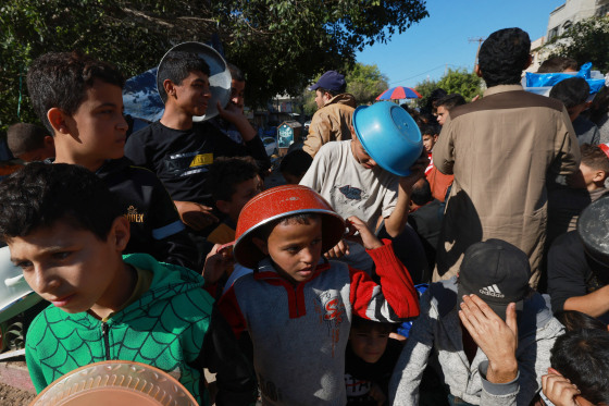 Palestinians line up for food donations in Rafah on Nov. 30. Conditions have worsened since. The U.N. secretary-general warned Thursday that the humanitarian support system in Gaza was at high risk of collapse: “We anticipate it will result in a complete breakdown of public order.”